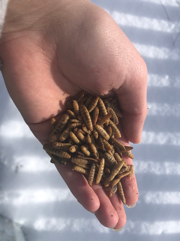 Mealworms are a great protein source for your flock. So if your chickens are molting they will need the extra protein to grow back new feathers. Feathers are very important as they will keep your chickens warm. One of my chickens, Rocky, has been moved to the garage for a bit because she doesn’t have her feathers back all the way. And when it is -15 degrees out she would have been so cold. As I am writing this article it feels like -10 outside plus we are having up to 40 mph wind gusts and it’s snowing, brrrrrr🥶. So as you can tell our chickens need extra protein and calories to stay warm.