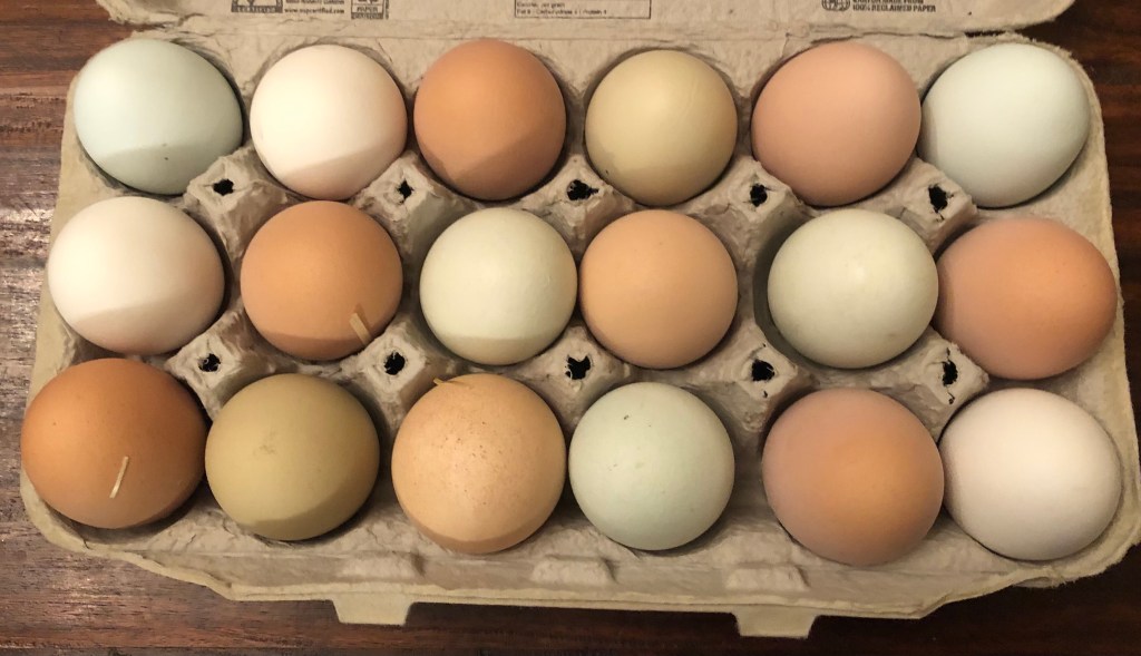 If you look at your hen’s earlobe you can tell what color of egg she will lay. I found this to be true for my first six hens that I raised from chicks. If your hen has a white earlobe then she will lay a white egg. Or if your hen has a brown earlobe then she will lay a brown egg. Hens that have a red earlobe usually lay brown also. My Prairie Bluebell Eggers had a blue-greenish earlobe and that is the color that they ended up laying. Now their earlobe probably won’t be the exact shade but you can at least tell the general color.