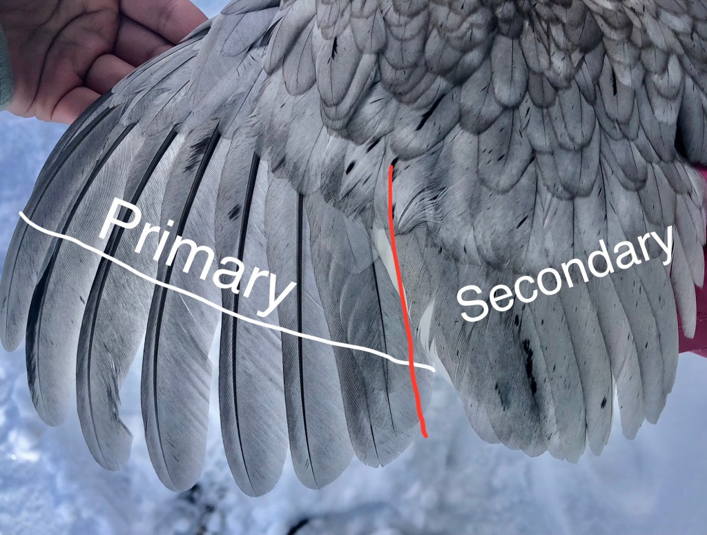 To clip their wings you will grab the wing and spread it out so that you can see all of the feathers.