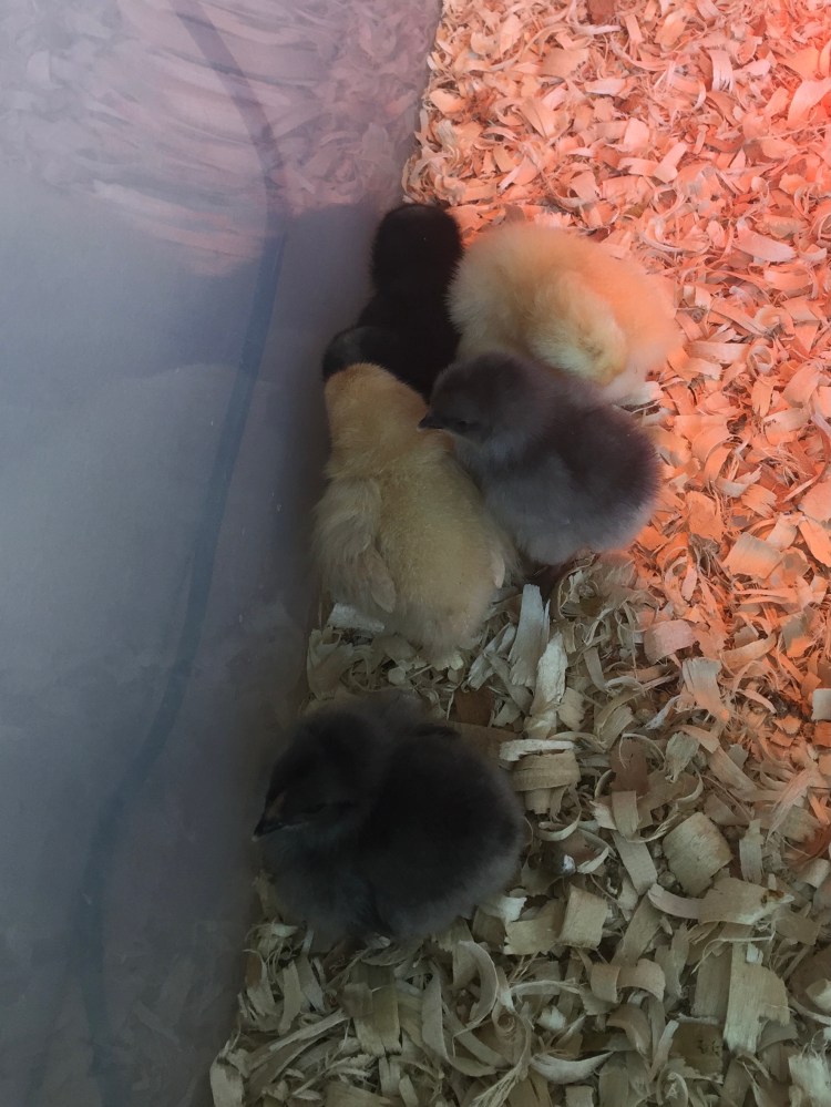 Little baby chicks will have to be kept at 95-100 degrees the first week of their life and it will gradually decrease as they grow, so you will have to provide that heat source for them. You can buy a heat lamp (which is what we used for our first chicks) but they are such a big fire hazard that I would recommend just spending the money on a chick brooder or heating plate, just please be extra cautious and keep a good eye on the brooder if you choose to use a heat lamp.