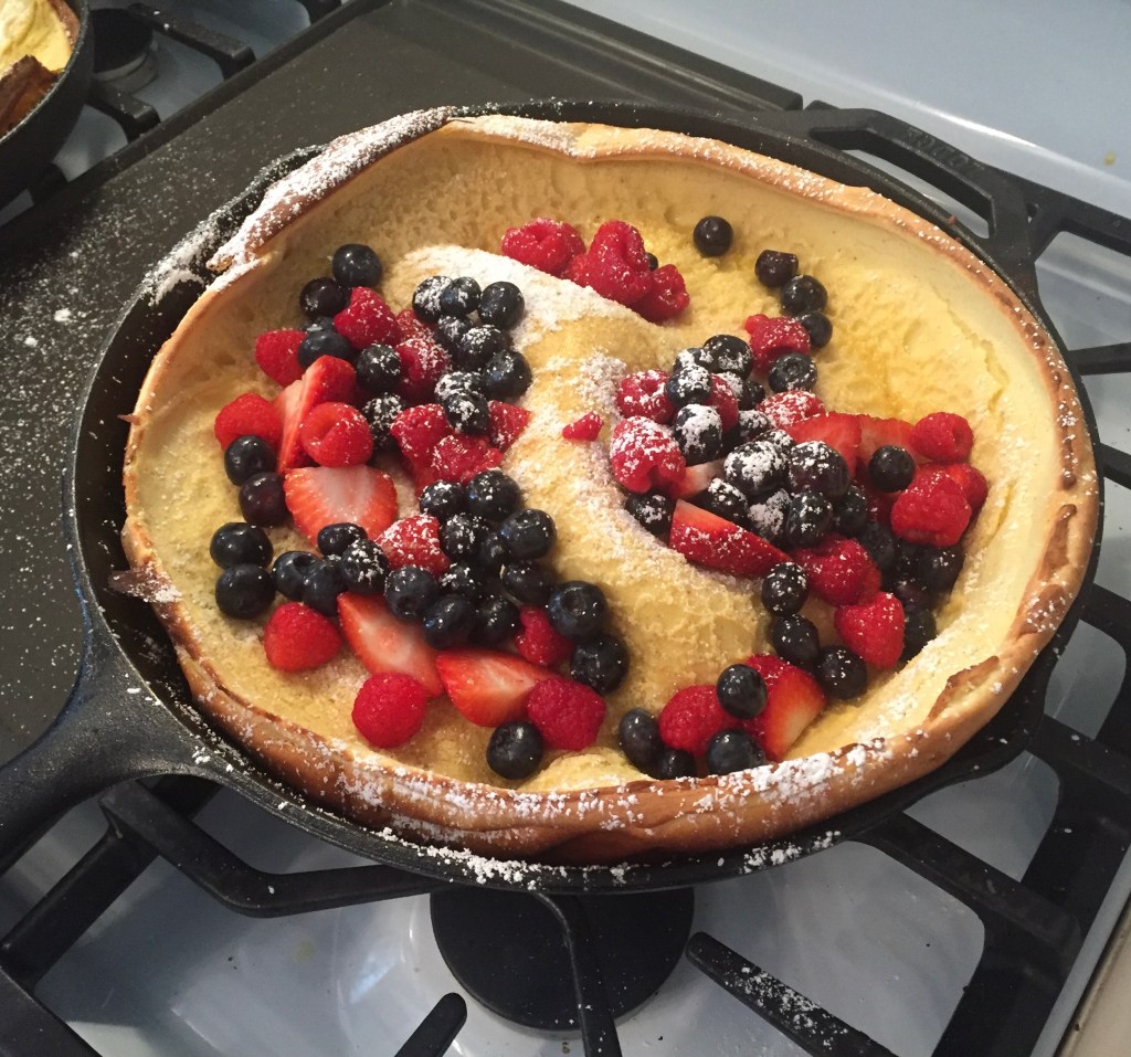 This delicious Dutch baby recipe is one of our favorite breakfast recipes. It is super easy and uses up a good amount of eggs. Depending on how many people you are feeding I would highly recommend doubling it. (We usually triple it in order for it to make enough for us.)