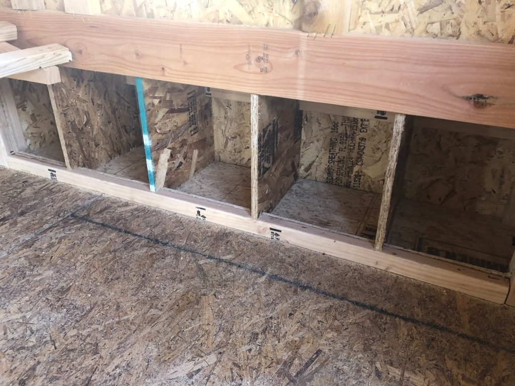 So the question is how many nesting boxes do you need? Most coops come with a minimum of three but you most likely won’t use all of those spaces. It is really funny when you hear one of your hens start fussing because a different hen is in their spot. Even though there are usually a lot of other boxes open they seem to usually wait and lay in the same one. In our coop we have 5 spots for them to lay and we have 13 hens (for now) 😉 most of the time I will find all of the eggs in the same box. They usually pick their favorite and that is the only one they use. So with that being said, you probably would be fine with however many boxes your coop comes with.