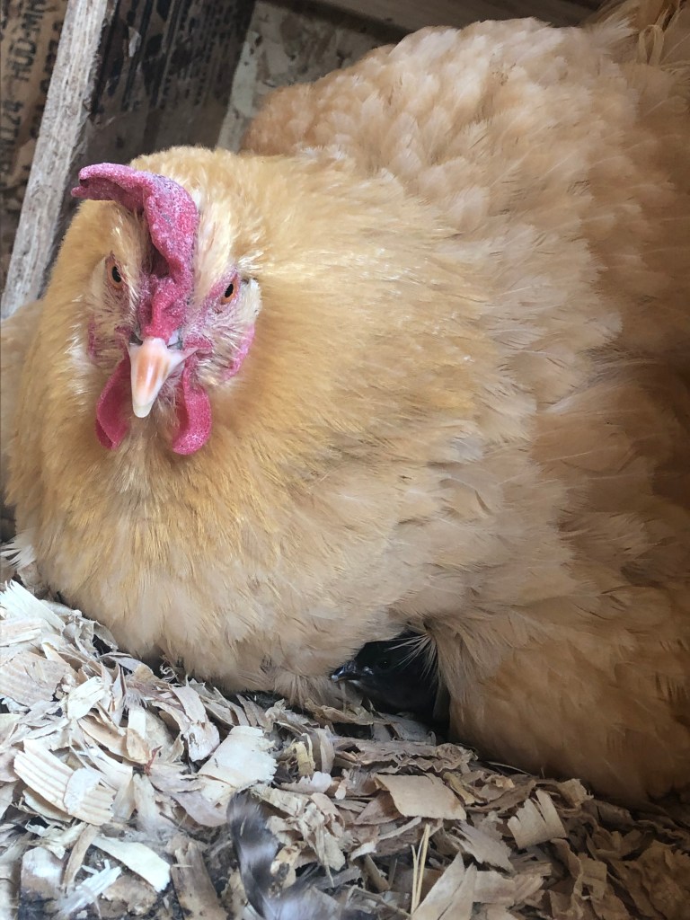 My first tip would be to label the eggs as soon as she collects her nest. The first time that one of my hens went broody I made the mistake of not labeling the eggs. So when I went out there to check on her I didn’t know which she had been sitting on and which she had gathered that day. So that ended up with the eggs not developing at the same time.