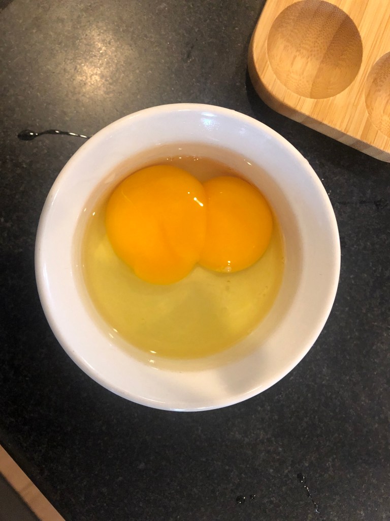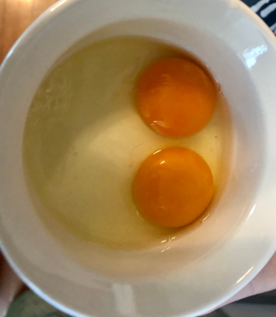 I always get excited anytime that I find a double yolk in one of our eggs! Plus it’s not super common to get them, so that always makes it super exciting when we do get one.
